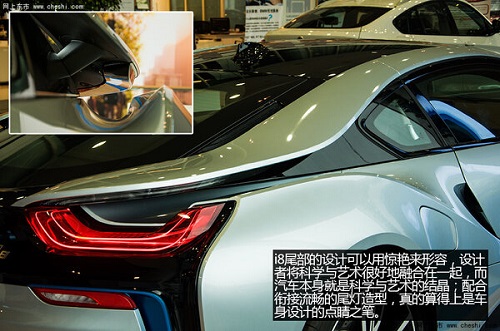 如果说全新BMW i8前脸的新气象令人耳目一新,那么车尾层次感分明的扰流板以及尾灯组的造型就成为全车最引人关注的点睛之笔。如此的造型设计不单单是考虑外观的视觉享受,同时也将空气动力学很好地加以利用,更不要说整个车身LifeDrive结构框架。