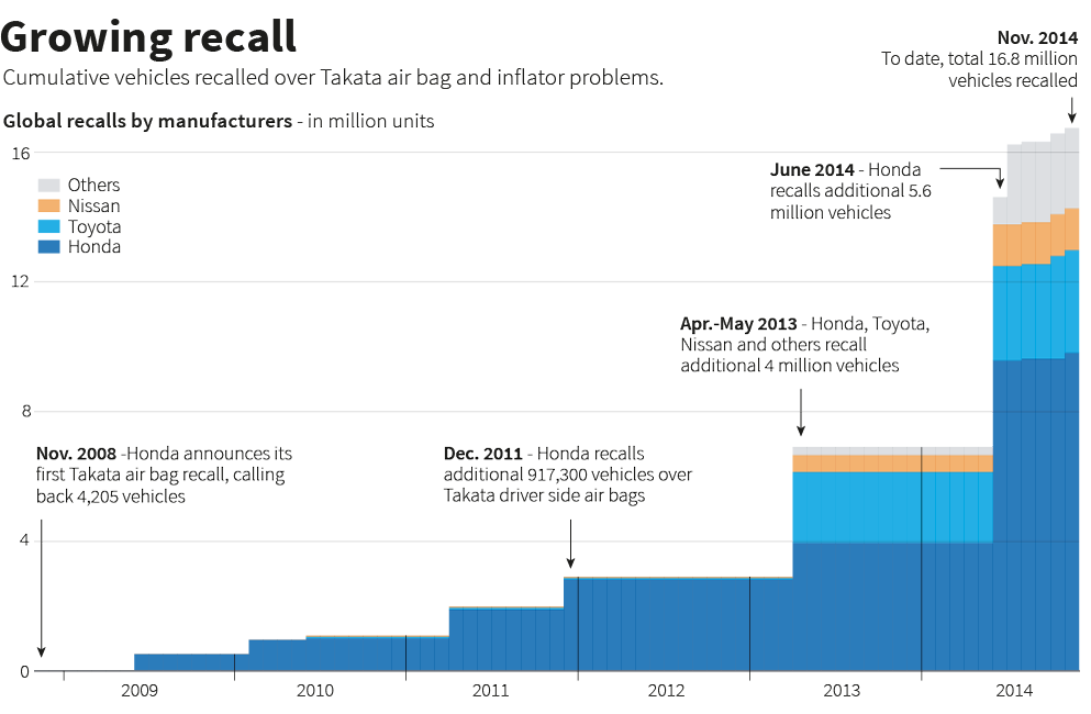 两名参议员认为,Weaver的死可能是和高田安全气囊相关的第六起致死事件,且是本田汽车之外传出的第一起致死事件。