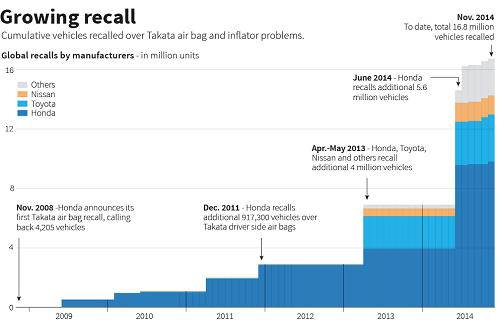 目前为止的召回都集中在潮湿地区。这个态度在听证会前的一场记者会受到质疑,两名美国参议员怀疑2003年亚利桑那州一起致死事件和安全气囊瑕疵有关。