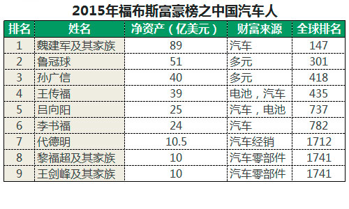 中国汽车圈这9人最有钱!2015福布斯富豪榜发布