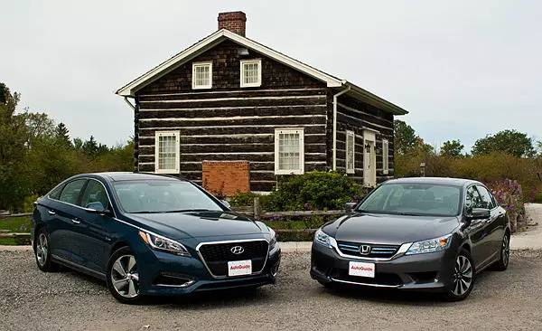 在动力输出方面,混动雅阁和混动索纳塔均采用2.0升四缸发动机配以电动机,功率也大致相同(雅阁144kW,索纳塔142kW),而且都是前轮驱动。不同之处在于混动雅阁采用CVT无级变速箱和1.3kWh的液态锂电池,而混动索纳塔采用传统的六速自动变速箱和1.62kWh的聚合物锂电池。