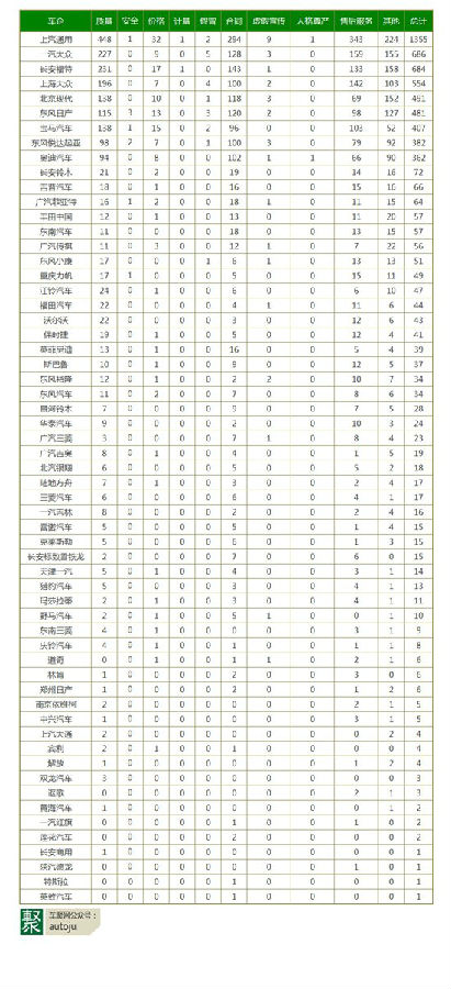 需要说明的是,消协发布的投诉受理数是一个绝对数值,所以也基本能看出一个简单的逻辑关系,即,销量大的品牌投诉量较大。因此,车聚君认为如果单纯进行投诉数的解读并不客观。