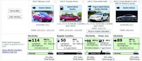 登录美国EPA下属网站,可便捷查询各种新能源(含混动)车型的能耗测试值。
