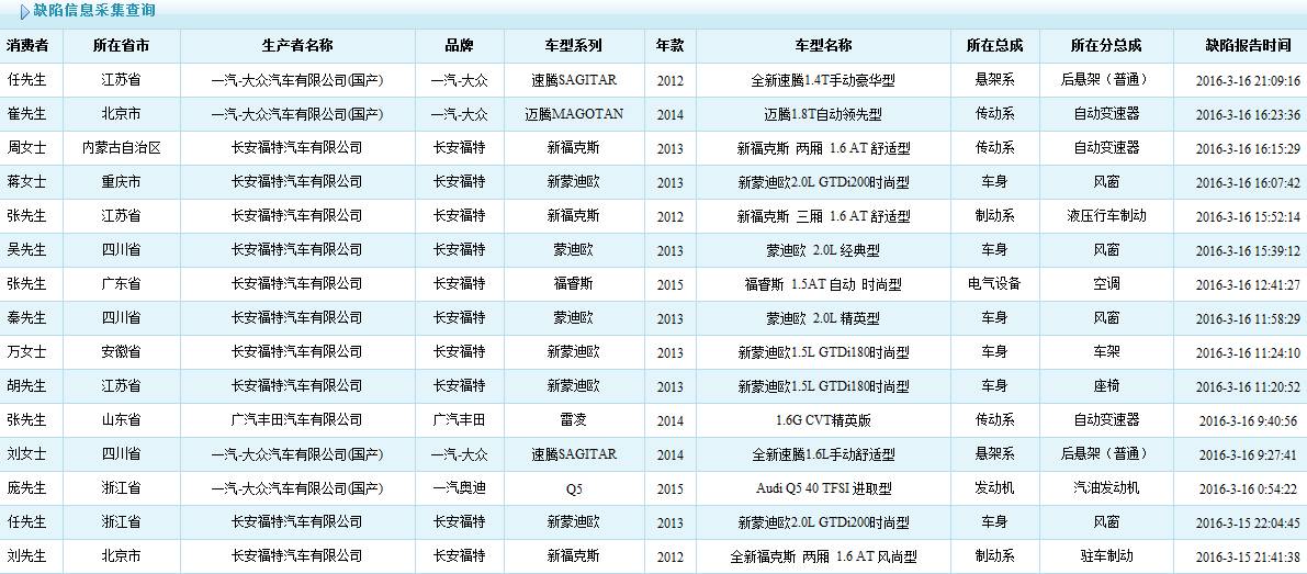这是最近几天的投诉情况,一页显示15条投诉,福克斯占了4条。如果说这个表太随机,没有代表性。那我们上大数据结果: