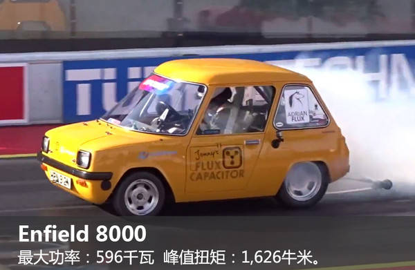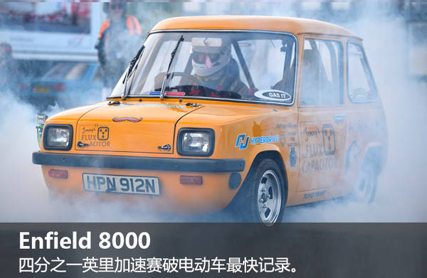 上周,在英格兰Santa Pod四分之一英里加速赛中,Enfield 8000以9.86秒的成绩夺冠,创造了194公里的最高时速。作为一款电动微型车,在Enfield 8000发布之初,其最高时速仅为64公里,而一名汽车记者兼电视节目主持人Jonny Smith在购买了一台被洪水浸泡过的二手Enfield 8000后,将其改装成了一台电动赛车。