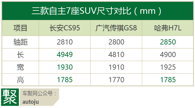 针尖对麦芒,各有所长。如果你对第三排空间有比较高的要求就选哈弗H7L,喜欢动力更强那就长安CS95,注重各方面都均衡那GS8比较合适。