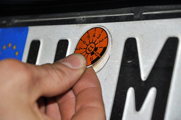 ▲德国的“年检标”是贴在汽车牌照上的