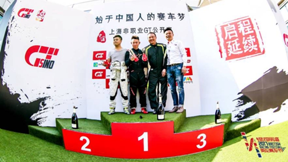 ▲银基汽车总经理邢健为获奖选手颁发奖杯并合照留影