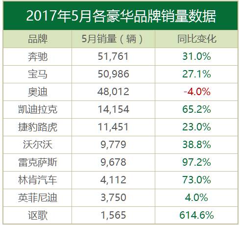 ▲本文排序以2017年5月中国市场销量以依据,数据由各品牌公开数据综合考量得出