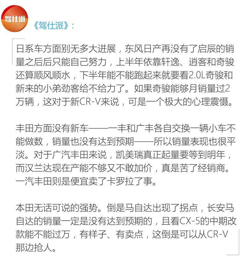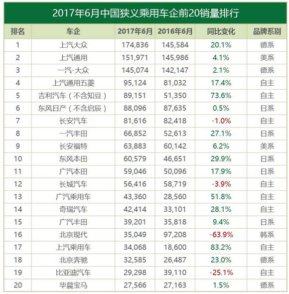 ▎首先,经历了2016年的购置税减半政策退坡效应之后,多数车企都熬过了去年四季度的透支消费影响,但也有部分合资车企掉队,半年时间都在减产降库存,销量排名一落千丈;