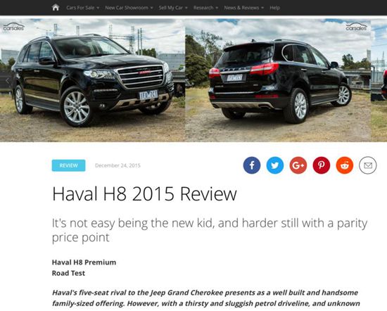 由于售价与品牌上没有优势,哈弗H8在澳洲上市初期并没有获得特别好的销量。但Carsales也给了H8“开时间长了会让人忘记掉它品牌上的劣势”这样不错的评价。