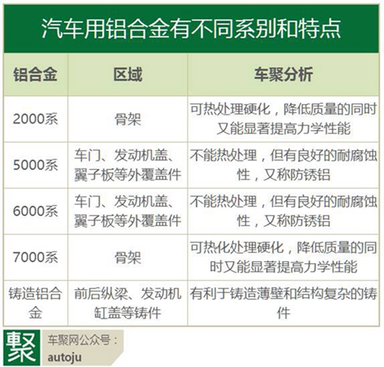 此前车聚君也归纳过铝合金在汽车上的使用特点,大家可以此作为参考。