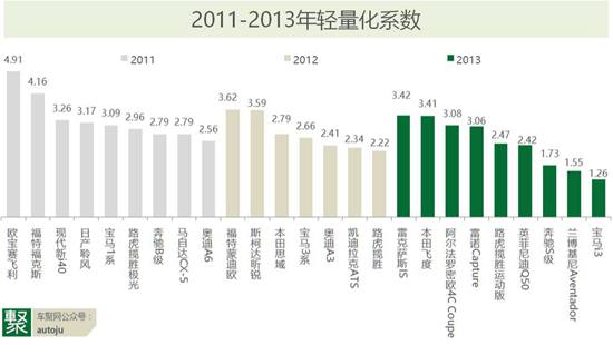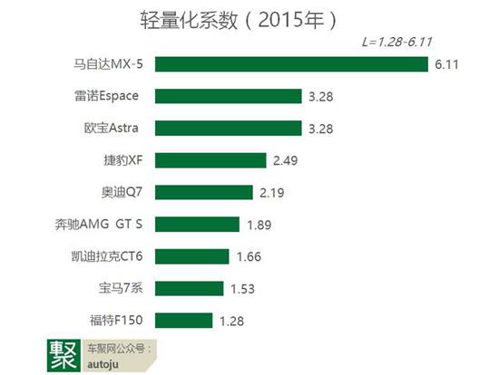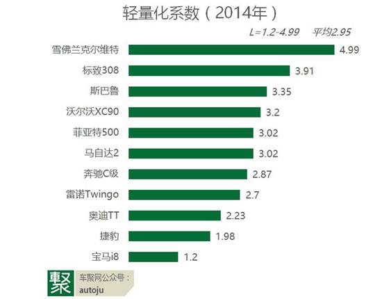 那2.02属于什么水平呢?我们不妨看看ECB近几年获奖车型的名单及其轻量化系数,整体来说近些年轻量化指数在2.5就属于十分优秀的水平了。可不要小看这0.5的差距,按同一车型来算,这基本相当于100kg的重量差距。
