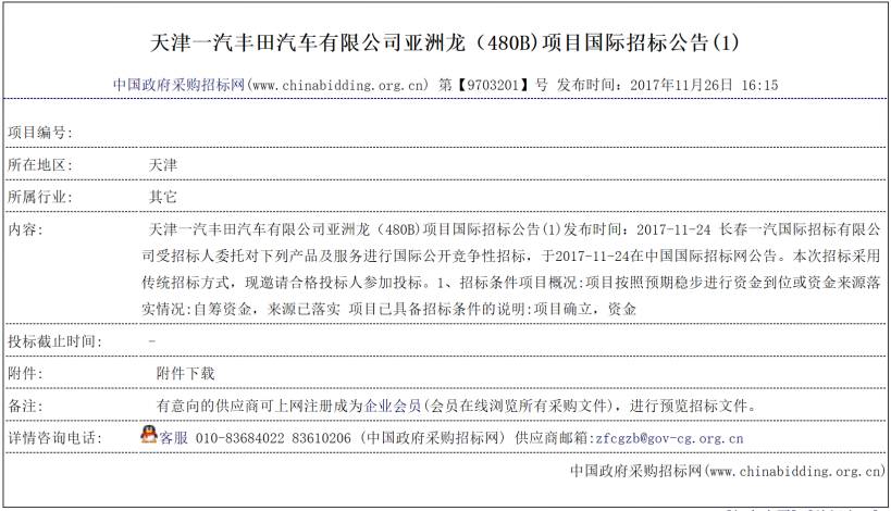 然而,随着凯美瑞不久前完成换代,在这场纠葛似乎就要到此为止的时候,车聚君在中国政府采购招标网上发现了天津一汽丰田亚洲龙项目的招标公告,看来新款亚洲龙要国产了。