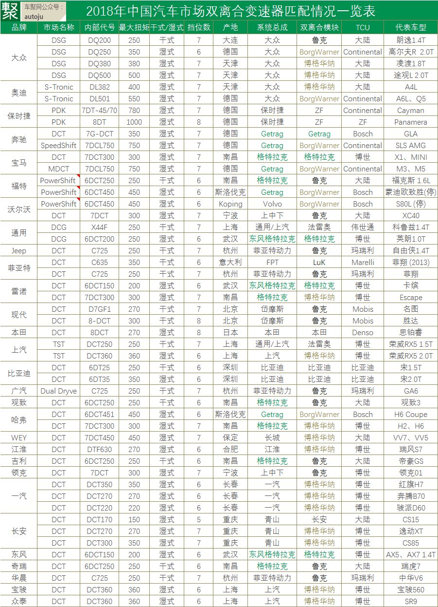 为了更清楚的展现双离合市场错综复杂的供应关系,车聚君花了几个晚上采访了十几位业内人士,整理出下表: