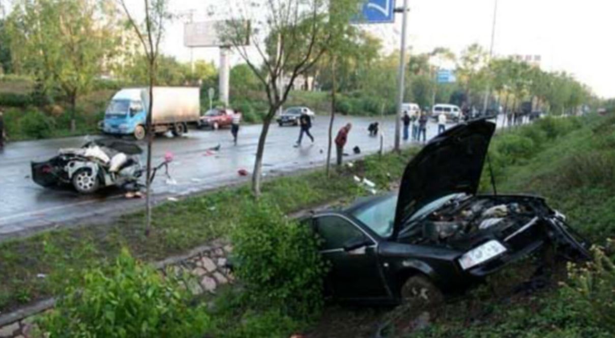 2007年6月5日,哈尔滨市一辆超速行驶的奥迪A6轿车在高速行进中与对向行驶的面包车相撞。又撞到路标杆。猛烈的撞击导致奥迪A6拦腰断裂,车体分离。