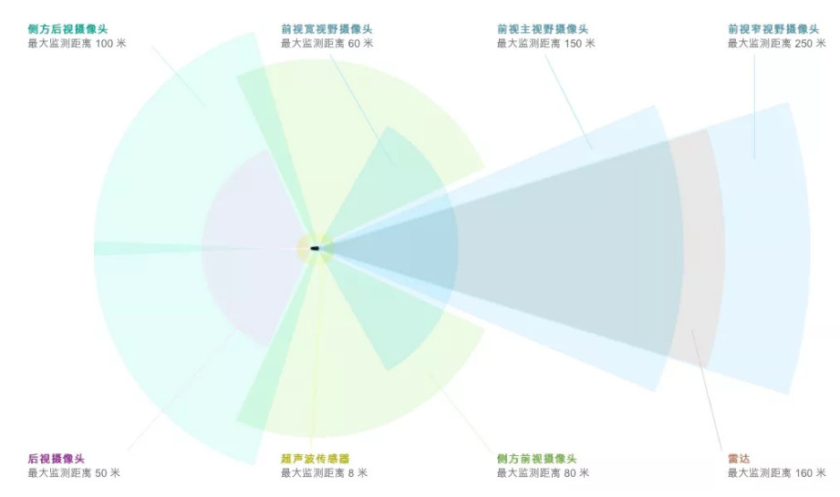 大家关注的Autopilot方面,全车配备了8个摄像头:挡风玻璃上方中央有3个,一个用于长距离探测,一个是近距离探测,还有一个作为多功能冗余摄像头提供足够的安全性。2个位于前翼子板上的三角形饰块处,2个隐藏于B柱中央,最后一个在后备箱处。此外,这个版本的Model 3,还有12个超声波传感器以配合FCW、AEB等主动安全技术。