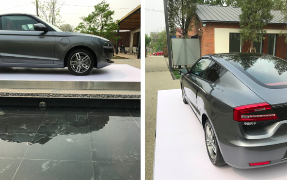 地点选在一个工业厂房改建的文艺园区,有点像798艺术中心。落地窗外,在水一方的白色展台上,静静停着一辆深灰色的轿跑--零跑S01。