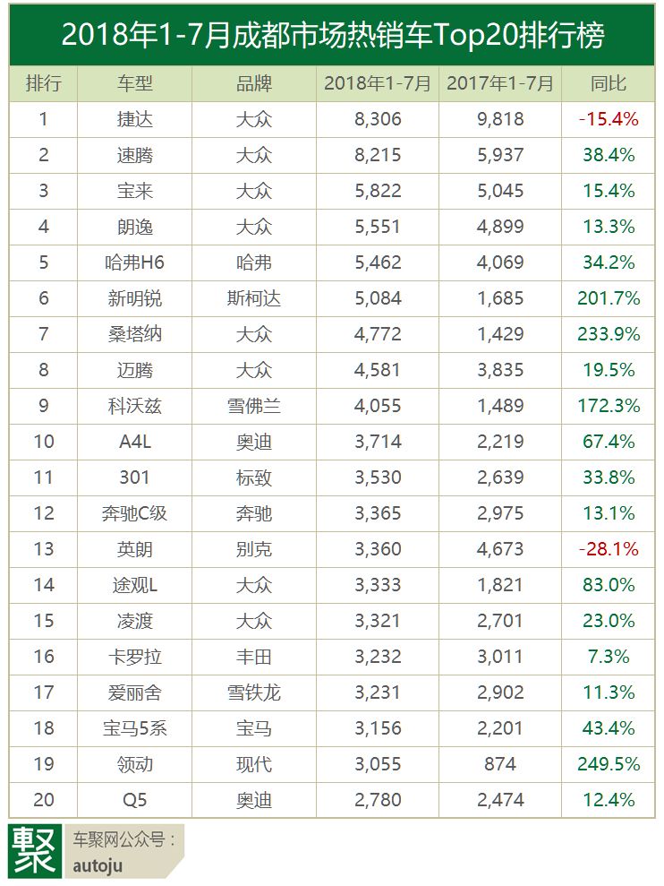 说完了成都人最喜爱的10款汽车品牌,接下来再聊聊成都最热销的20款车型。