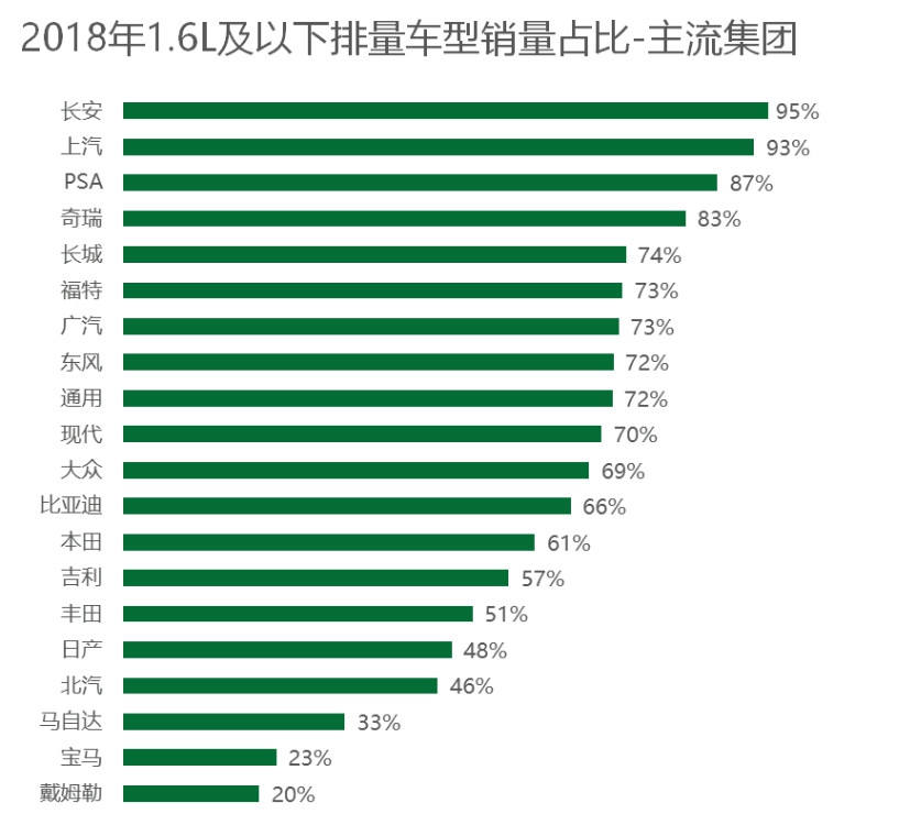 此次引导农村汽车消费的升级,鼓励农村汽车消费的主要受益者是自主品牌。例如长安汽车、上汽集团和奇瑞汽车,1.6L及以下车型销量占比最高,分别为96%、93%和85%;长城、吉利分别为73%和56%。