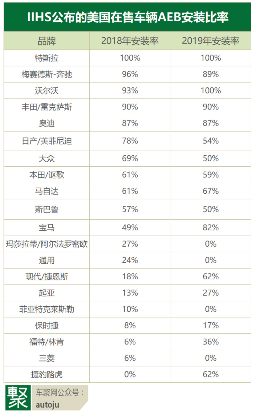 IIHS公布AEB安装率,特斯拉沃尔沃100% 玛莎拉蒂0% | 聚闻