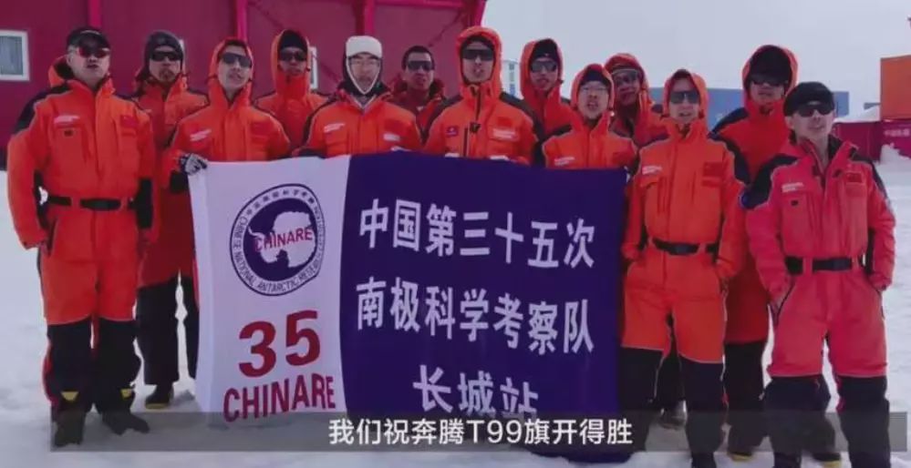 现场,大屏幕出现了正在万里之外南极长城站、中山站的雪龙2号,那里的科考队员们为奔腾T99送上了祝福。