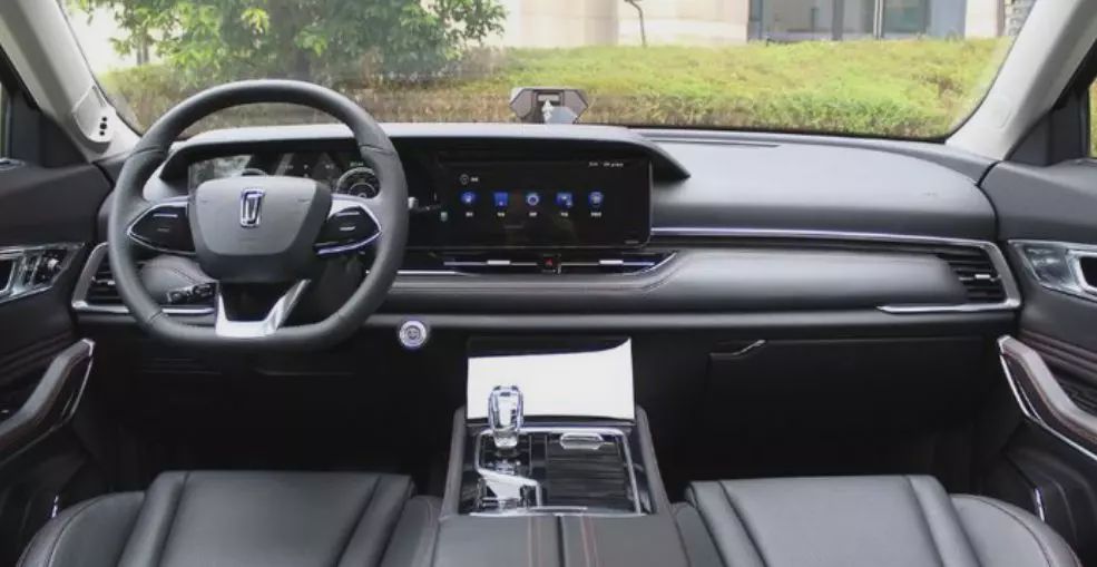 坐进车内,最醒目的是两块12英寸屏幕连结在一起,将中控与仪表盘融为一体。这是当下豪华车和新势力比较流行的设计,整体看上去也确实简洁有范儿。