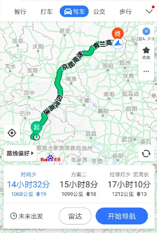 还好一路有惊无险。全程1068公里,地图估时14小时32分,但实际上只用了11小时35分钟--整整省了3个小时。