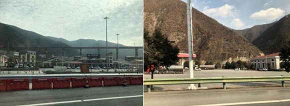 透过车窗往外看,服务区也比以往空荡了些许。下图为透过车窗在高速行驶中拍的万源北服务区和安康北服务区。这本来是沿途稍大点的服务区了,可是车辆依旧很少。