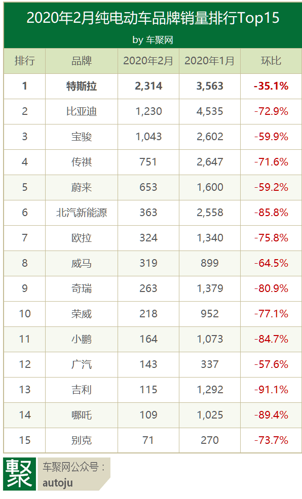 2月车市大萧条,电动车市场也不外如是。