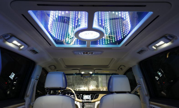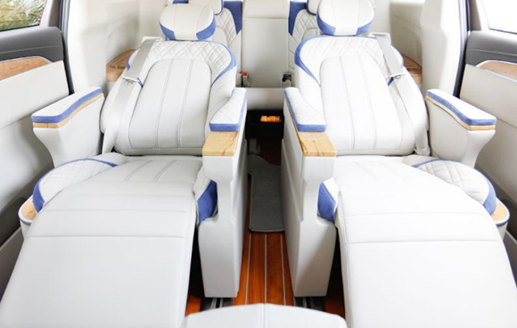 航空座椅、流星顶灯、顶棚麂皮包覆、中央扶手箱、冰箱、商务吸顶电视、纯手工拼接柚木地板……GL8的内部改装同样花样不少。