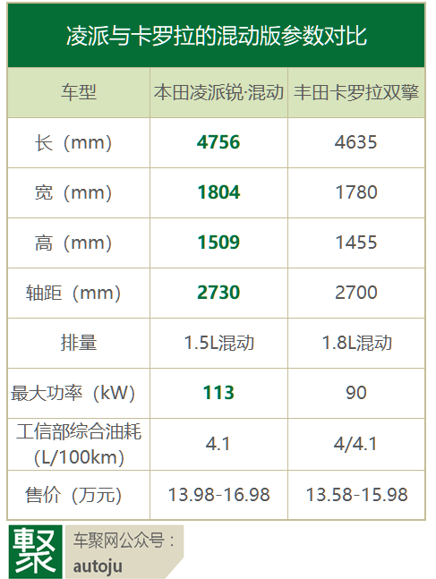 二、混动凌派能威胁到混动卡罗拉吗?