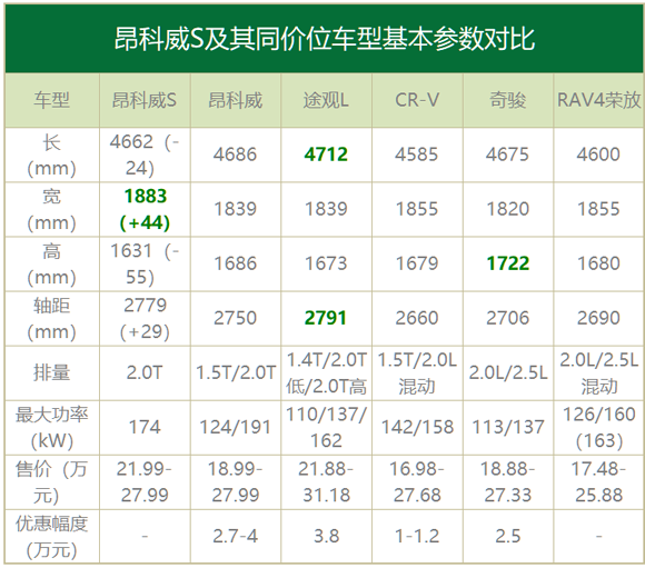 而这回昂科威S 21.99万元的起售价算是刷新了新高,尽管在同级对比中,能够看到昂科威S的尺寸还是有些优势,轴距仅次于途观L,而动力部分则几乎是同级最强。