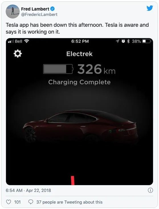 2018年4月22日,美国部分特斯拉车辆出现了软件连接故障,特斯拉在推特上表示正在加紧解决问题。
