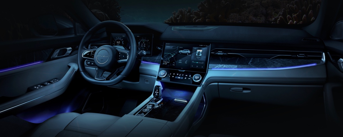 全新数字化设计为驾驶者带来了舰长操控舱般的驾驶体验,引人注目的"云图式智控六联屏"将车内数字豪华感衬托的更加浓烈,高度集中的数字化图像显示功能,让驾驶者及时掌握各项信息,让行驶更轻松愉悦。其中12+6英寸的 Lynk-Mate双屏中控尤为亮眼,上屏是车载娱乐区,下屏为温控管理系统,整合了驾驶中的常用功能,有效减少用户操作层级,方便快捷。