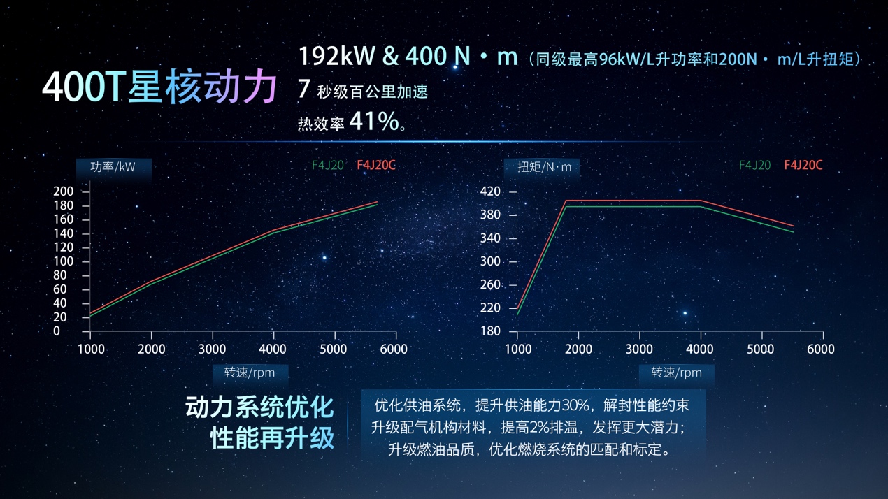 参数层面,2.0TGDI发动机最大功率达到192kW,1750rpm – 4000rpm转速下始终保持峰值扭矩400N·m的持续输出,最大有效热效率41%,升功率96kW/L,升扭矩200N· m/L,此前有媒体实测零百公里加速只需6.94秒。正是在M3X火星架构PRO的加持下,整车动力表现出收放自如的从容状态,完全媲美一流合资豪华水平。