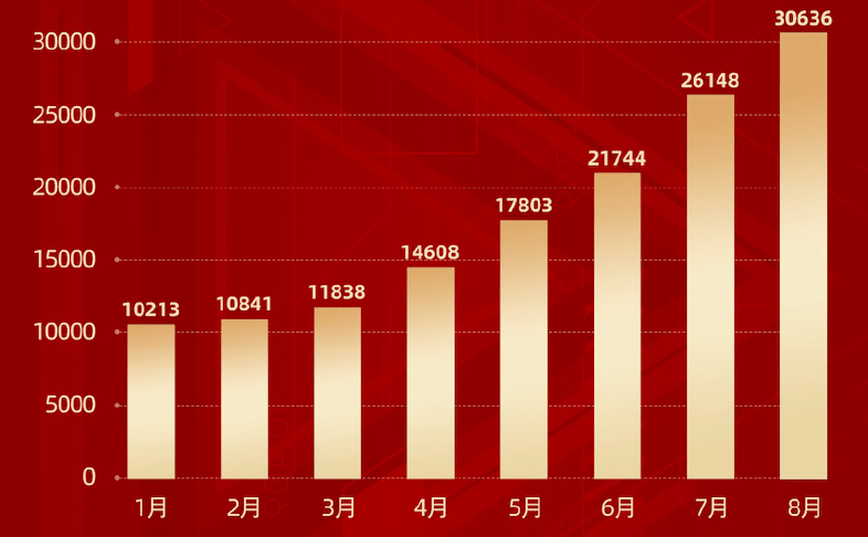 让小编费了点力气的地方在于, 零跑1-8月的累计销量是多少?不少媒体人直接引用了8 月柱图上的30,636,这其实是错误的。