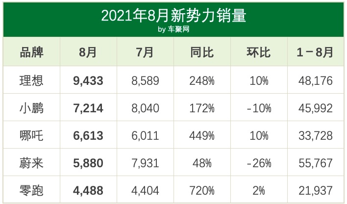 8月新势力:理想突破9000,蔚来首次跌出第一阵营 | 聚焦