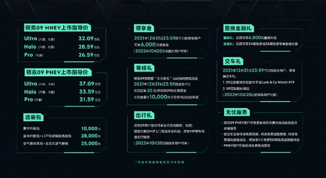 对于领克09 PHEV车型的用户,还可享受终身免费电池质保服务、首任车主充电设施及首次安装服务。同时,领克还为每一位领克09的用户定制了交车礼与出行礼,带给大家更高品质的出行以及拥车体验。