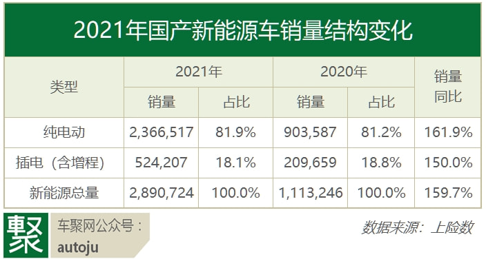 比亚迪以9.5万月销夺冠,不但创了自己的纪录,也创了中国新能源月销纪录。同时,它2021全年的销量为52.5万辆,同样是第一名,领先亚军特斯拉10万辆。至此,新能源汽车领导者,终于在中国市场名正言顺了。