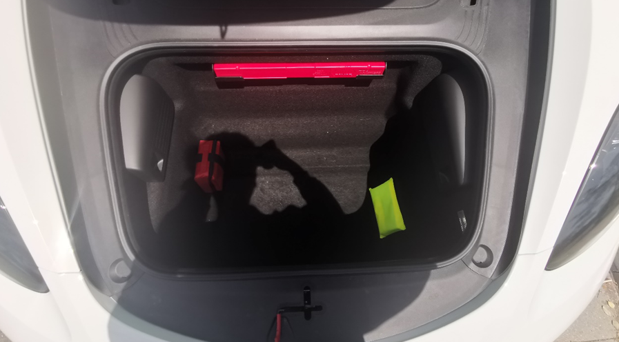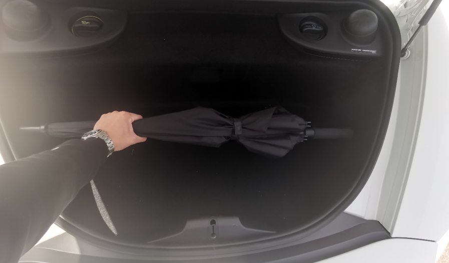 至于大件行李,则只能依赖于前备厢和后备厢了,其中后备厢相对宽一些,能放下长柄雨伞,但深度比较浅,前备厢相对较深一些,但略微窄一些。