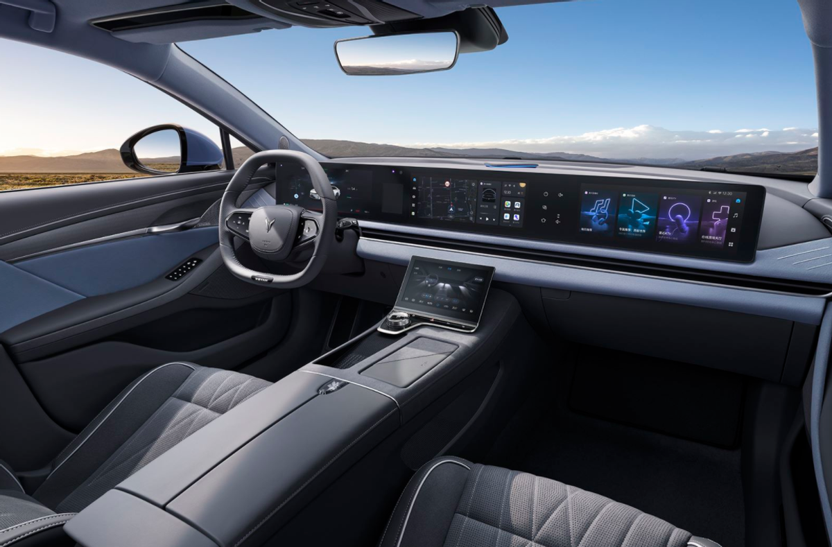 岚图追光内饰以光透过不同物体的形态为意向,用凌厉的线条和波动的曲面,为追光座舱塑造了富有韵律的“光之域”,不论是水晶玻璃材质的换挡旋钮和扶手按键、月影式的丹拿浮岛,还是光棱式的座椅缝线,都彰显出岚图追光与众不同的豪华气质。