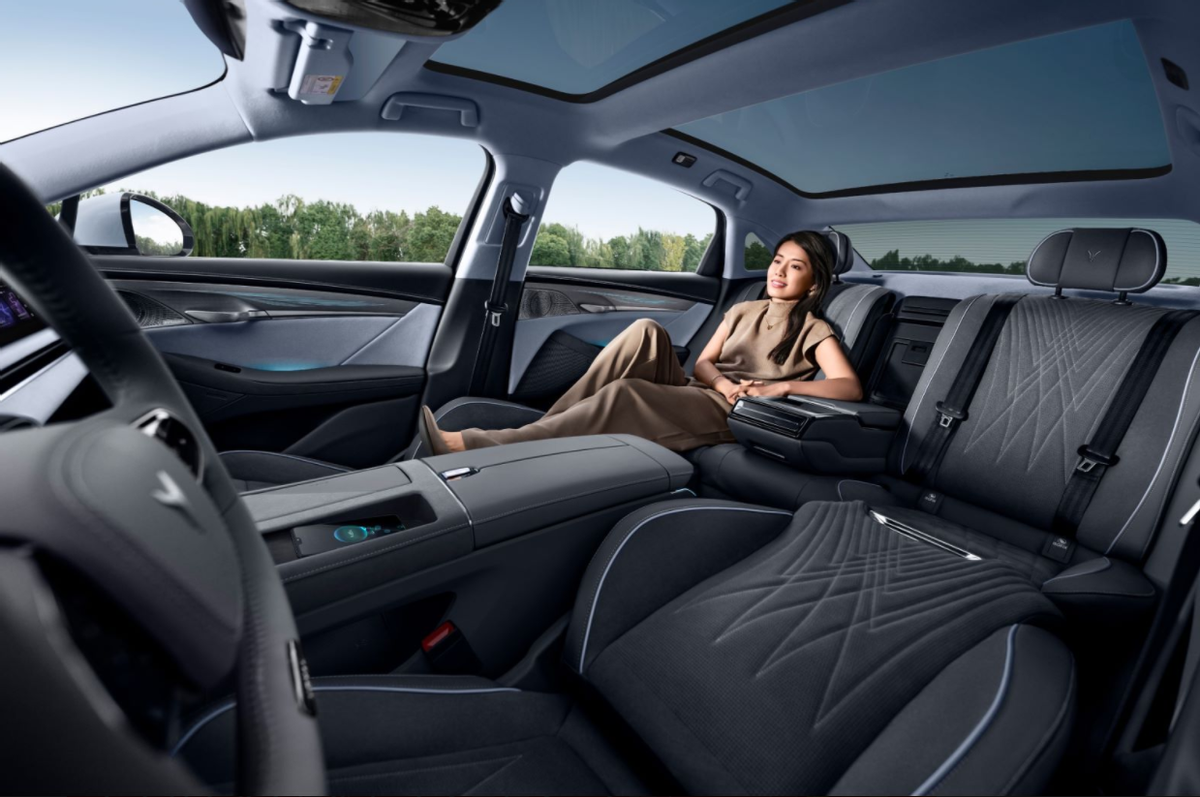岚图追光座舱长达1940mm,虽为溜背造型,岚图的设计师们通过巧思,为后排乘客头顶预留了足够的空间,解决了溜背车型的压迫感。同级最大的全景天幕可使乘客在车内尽览四季变化,分区控制的双电机卷帘,不必担心夏日烈日的暴晒。在夜晚,环绕座舱的呼吸式变色灯可根据音乐的节奏律动,为车内带来酷炫的视觉感受。通过放平前排座椅,岚图追光可以瞬间变成私家电影院,配上环绕全车的14个丹拿音响,在车内尽享私密而震撼的视听盛宴。