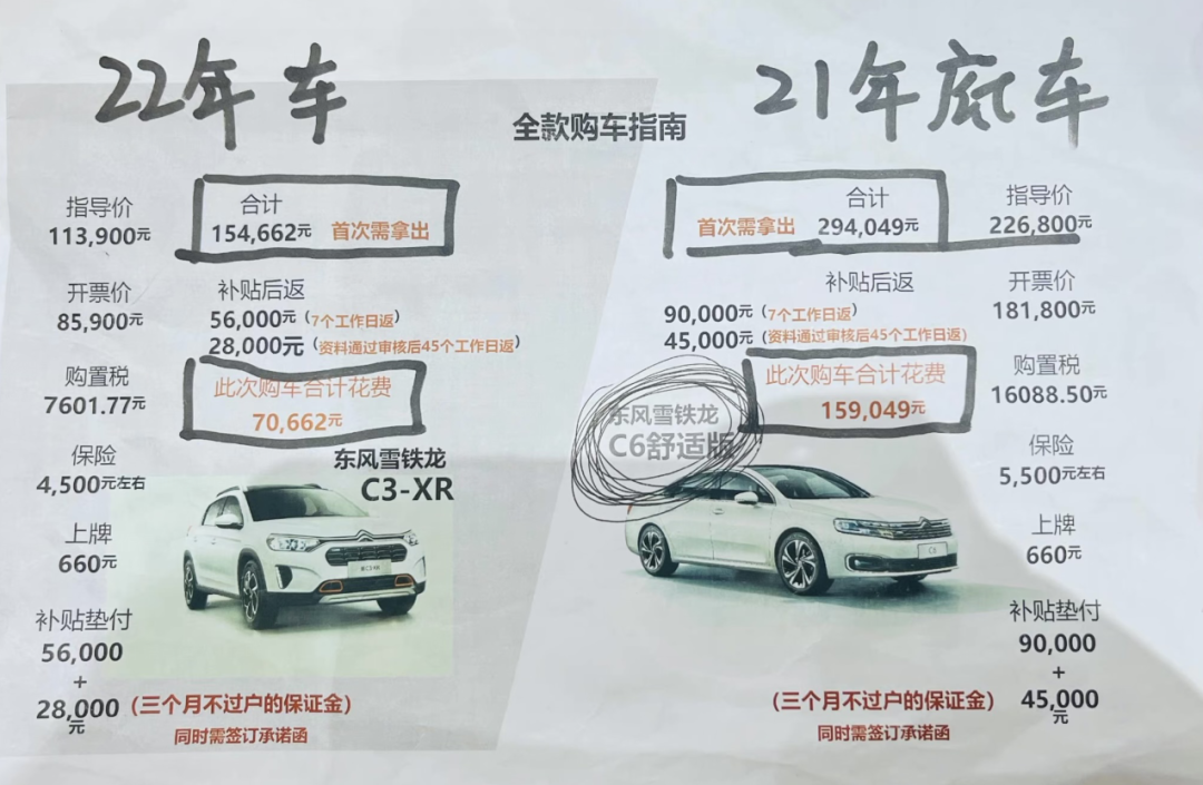 这样算下来,B级车雪铁龙C6共创版实际价格只要12.19万,相当于打了57折,小型SUV C3-XR相当于打了对折。一时间,神龙汽车湖北各地的4S店客户云集,人声鼎沸,有的店还排起了长队。