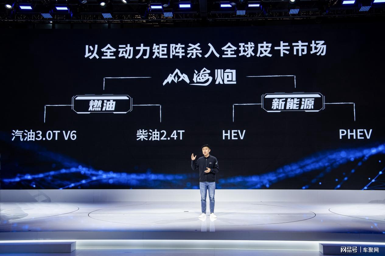 长城炮采用以电赋能燃油策略,基于Hi4-T越野超级混动架构,打造中国首款大型高性能混动皮卡——山海炮PHEV、山海炮HEV车型,引领中国皮卡4.0全场景智能新能源时代。