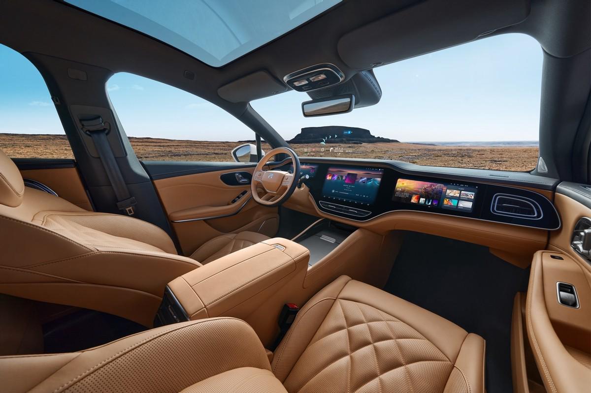 作为一款中大型轿跑SUV,新款R7美学与空间兼具。它由曾打造出大众最美车型CC的首席设计师Martin Kropp亲手打磨,以极简线条勾勒,辅以百万海豚背与超跑宽肩设计,带来简约、豪华美学风格。其4米9车长,2米95轴距,低至110mm电池包超薄垂直高度,提供了更宽敞的乘坐空间。1.855平米超大全景天幕,让用户视野更加开阔。