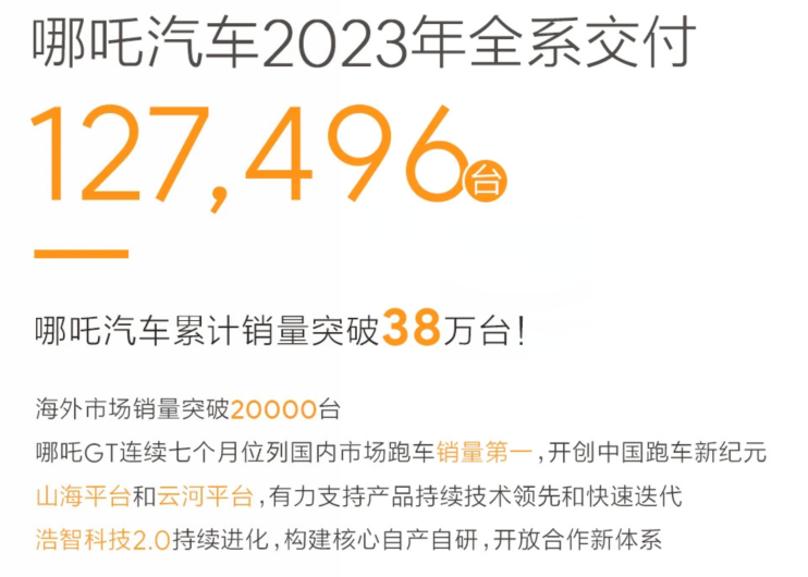 哪吒12月表现很是“失意”,新车交付5135辆,不论是同比还是环比都呈现断岸式下滑。2023年,哪吒共交付127,496辆,同比下滑16.2%,对比其25万辆的销量目标,完成率仅为51%。