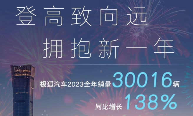 极狐12月销量达8,004辆,环比11月的3849辆增长了108%;2023年全年突破3万辆至30,016辆,同比增长138%。