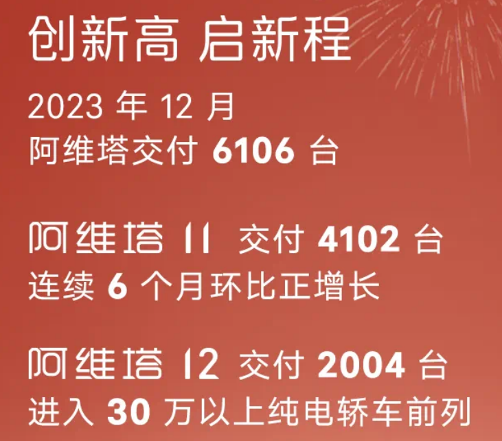2024年伊始,造车新势力纷纷公布了其2023年12月新车销售成绩单。