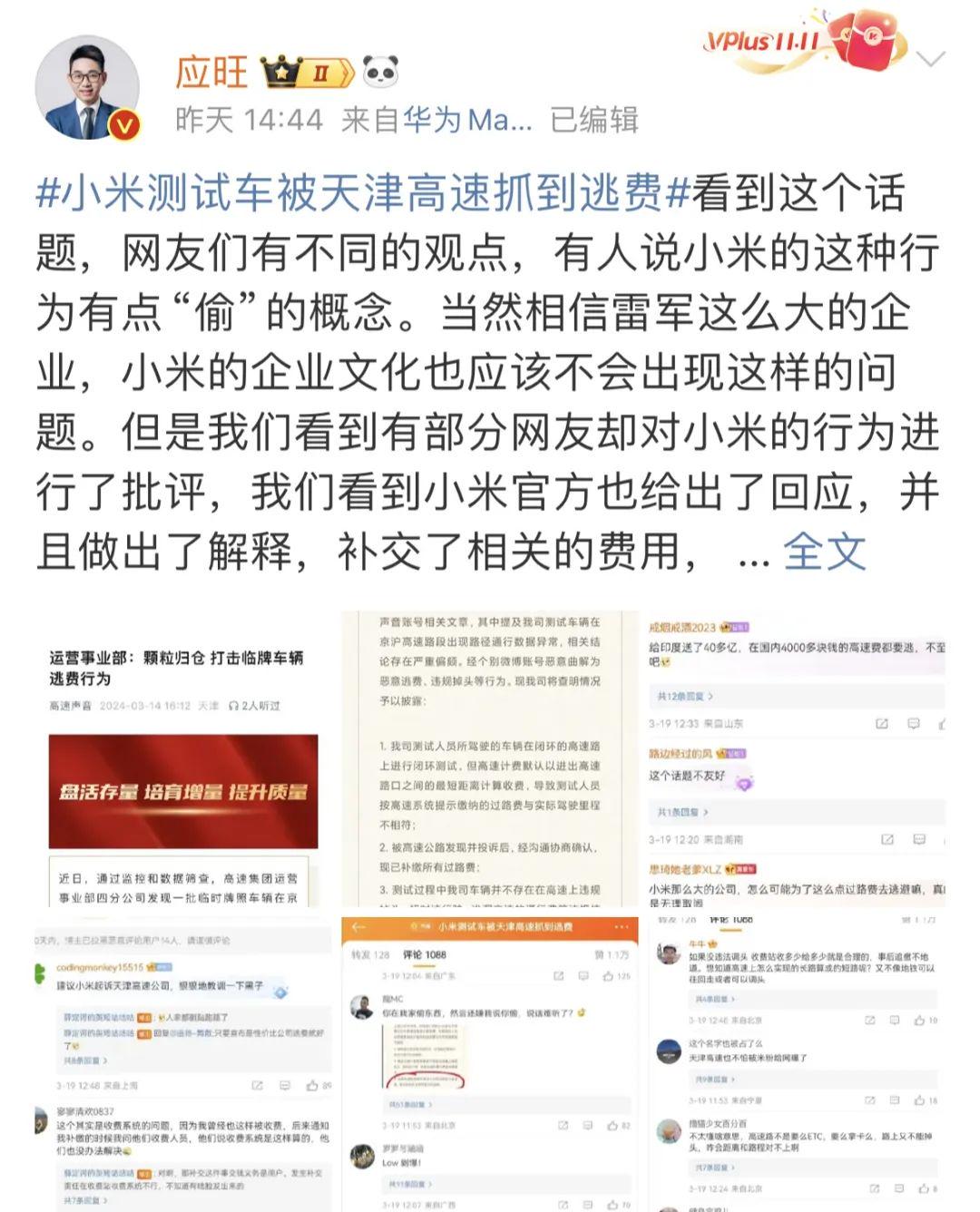 一部分网友支持小米:“小米这么大的公司,怎么可能逃这几千块路费?” “收费站收多少就给多少,事后追缴不地道。” “建议小米起诉天津高速,狠狠教训一下黑子!”